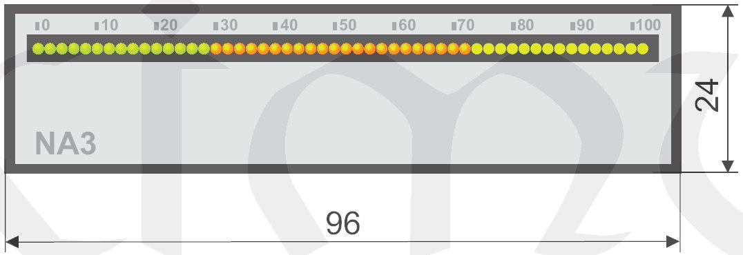 Bargraf - sloupcový ukazatel typ NA3BT-0U011000, rozměr 96x24, Tříbarevný, barva číselného displeje bez displeje, RS485 -ano, 1 relé, výstup: bez analogového výstupu, napájení 95..253 V ac/dc
