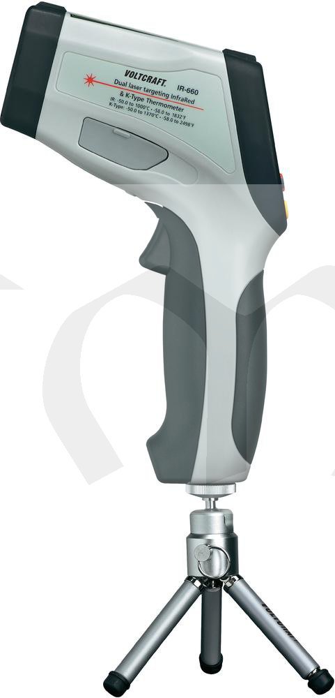 Provotřídní infračervený teploměr od firmy Voltcraft. IR1000-30D nabízí špičkovou technologii a díky ochraně povrchu pogumováním je velmi odolný. Mezi další přednosti patří rychlá reakční doba, vysoký rozsah měření teplot, vyborná přesnost a dvojitý zaměřovací laser. Dále můžete měřit teploty pomocí čidla typu K.