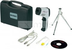 Prvotřídní infračervený teploměr od firmy Voltcraft IR2200 50D nabízí špičkovou technologii a díky ochraně povrchu pogumováním je velmi odolný. Mezi další přednosti patří rychlá reakční doba, široký rozsah měření teplot, výborná přesnost a dvojitý zaměřovací laser. Dále můžete měřit teploty pomocí čidla typu K. IR2200-50D USB má rozhraní USB a integrovanou paměť pro 99 naměřených hodnot. Naměřené hodnoty měření mohou být pomocí USB rozhraní přeneseny do počítače, dodávaný software umožňuje provádět trvalé měření a dlouhodobou kontrolu.