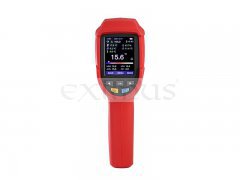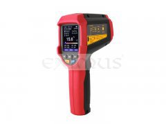 Profesionální bezkontaktní infračervený teploměr UT-305C+ dokáže rychle a přesně určit povrchovou teplotu v rozmezí -50...+2200°C změřením infračervené energie vyzařované z cílového povrchu. Pro snazší a intuitivní zaměření přístroje na cílový povrch je zabudován laser, který indikuje správné zamíření teploměru. Poměr vzdálenosti k průměru měřeného povrchu je u tohoto přístroje 55 : 1. Tento teploměr má zabudované další funkce, např. měření teploty okolí teploměru, měření teploty kontaktním termočlánkem typu K, měření relativní vlhkosti okolí teploměru. Na základě těchto změřených hodnot sám vypočte teplotu rosného bodu nebo teplotu vlhkého teploměru. Do teploměru je možné zadat systémový čas a datum. Měření hodnot je možné naplánovat v předem stanovených intervalech a celkem 999 událostí (skupin dat) uložit do interní paměti. Je možné přednastavit emisivitu měřeného povrchu v rozmezí 0,1 až 1,0. Indikaci přednastavených funkcí a naměřených hodnot zajišťuje jasný a vysoce kontrastní TFT LCD barevný displej a hraniční hodnoty jsou indikovány bzučákem a na displeji. Je možná indikace minimálních, maximálních a průměrných teplot a odchylek od průměru ( MIN, MAX, AVG, DIF ). Přístroj je odolný proti pádu z výšky 1 metru.