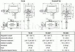 Termostat TH20 je jednopólový samočinný spínač, zalo­žený na principu nestejné tepelné dilatace dvou růz­ných kovů. Je určen k regulaci teplot plynného pro­středí, vytápěného střídavým elektrickým proudem (elektrické pečicí trouby a podobná zařízení) v daném rozsahu. Spínací hlavice může být umístěna v pro­středí s maximální teplotou okolí +120 °C a relativní vlhkostí vzduchu maximálně 80 %. Základem termo­statu je spolehlivý mechanický systém, který nemá žádnou vlastní spotřebu energie. Termostat se vyzna­čuje vysokou odolností proti mechanickému poškození a nízkými náklady na provoz a údržbu.