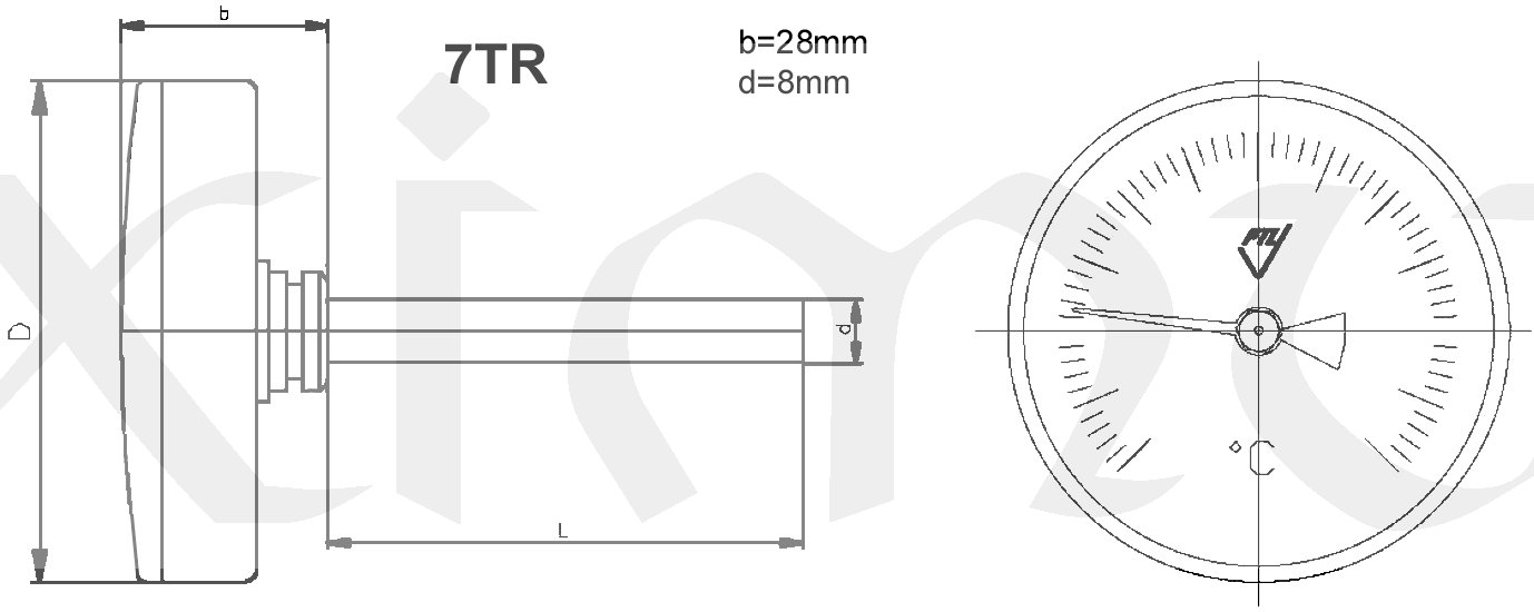 Teploměr přímý pr.100mm, se stonkem 100x8mm, rozsah -20+100°C