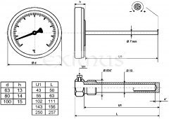 MTR63 0-500°C/100mm vč. nerez jímky