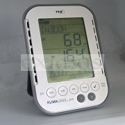 Teploměr s vlhkoměrem "TFA 30.3039" připojitelný do PC přes USB bezdrátový přijímač (velikost USB flash paměti, viz. obrázek níže) zaznamenává vnitřní teplotu a vlhkost, zobrazuje rosný bod, max. a min. naměřené hodnoty s časem a datem měření, průměrné hodnoty. Unikátní funkcí jsou pak alarmy pro dolní a horní mez měřených veličin (teplota, vlhkost). Přístroj má zabudovanou paměť až pro 50 000 naměřených hodnot, které si můžete nechat zobrazit přes displej (mnohem lépe se však data budou zpracovávat v PC).