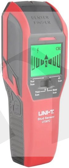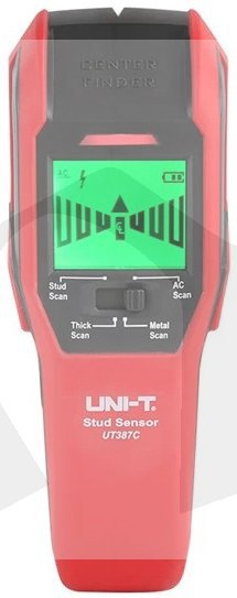 Skener UT-387C je určený pro detekci různých nehomogenit ve zdi nebo za sádrokartonovou stěnou - například železných a neželezných (měděných, mosazných) trubek, výztuže v betonu, nerezové nemagnetické oceli, elektrických drátů bez napětí i s el. AC napětím, dřevěných latí a špalíčků. Detekce probíhá na základě principů elektromagnetické indukce. Skener obsahuje LCD indikační displej, indikační barevné LED a bzučák. Napájení skeneru je baterií 9V (6F22).