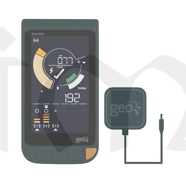 Ukazatel spotřeby GEO Ensemble přehledně zobrazuje cenové relace odběru elektrické energie a celkové náklady v domácnosti. Snímání spotřeby se provádí prostřednictvím LED senzoru tak, že blikající dioda na zapouzdřeném elektroměru přenese informaci o aktuální spotřebě. Zásah do elektroinstalace není nutný. LED snímač je namontován přímo na měřiči-elektroměru s blikající LED. Ke změření celkové spotřeby elektrické energie může být použito i více zásuvkových elektroměrů a odečítat hodnoty jednotlivě z každého z nich.