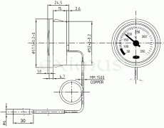 Montáž teploměru se provádí nasunutím hlavice teploměru do otvoru dle příslušného rozměrového náčrtu a umístěním teploměrového