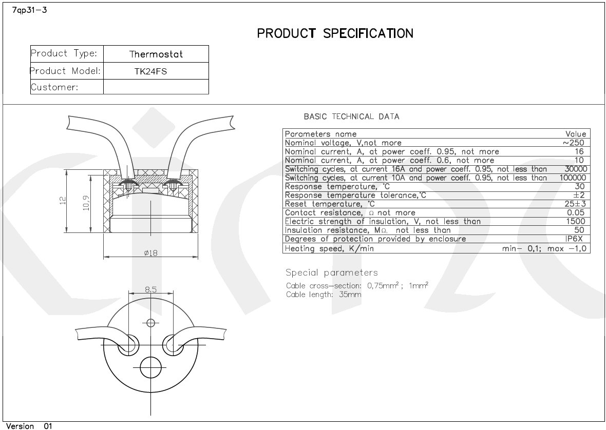Termostat rozpínací +30°C K24FS 25K2H &AB