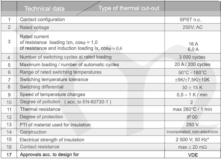 pro maximální vypínací teplotu, +75°C - resetovací teplota bude v rozsahu od +30°C do +60°C.