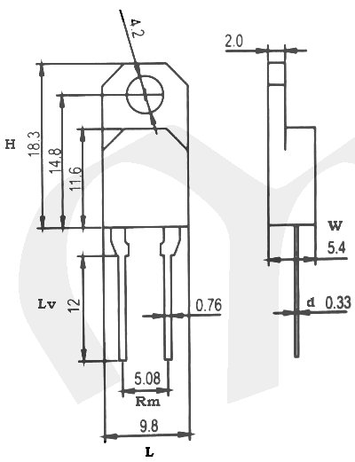 RM - rozteč vývodů2.5 [mm], pouzdro THT otvor pr.4.2mm