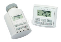 Termostatická hlavice s bezdrátovým řízením. Velice jednoduchá instalace hlavice přímo na ventil radiátoru místo stávajícího "kolečka". Řídící jednotku (vysílač) umístíte jednoduše v objektu. V sadě jsou tři redukce Danfoss pro různé ventily.