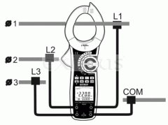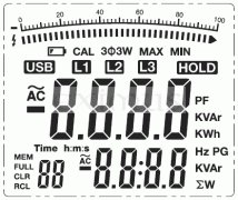 ♦ měří V, A, kW, kVA, kVAR, PF,  cosfi, kWh, Hz