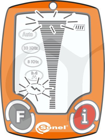 • aktivní režim (s vysílačem) - 8 kHz, 33 kHz - lokalizace s přímým napojením vysílače na objekt, který není pod napětím