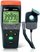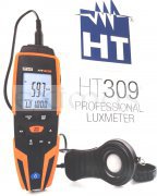 Přístroj HT-309 je přesný digitální luxmeter, především pro měření intenzity osvětlení jak bílého světla tak i zdrojů LED nejrůznějších barev, intenzitu vyhodnocuje v luxech (lx) nebo footcandlech (Fc).  Čidlo z HT 309 je k přístroji připojeno pomocí kabelu spojovací vedení s přístrojovém a je volně používáno pro přesné měření intenzity světla.