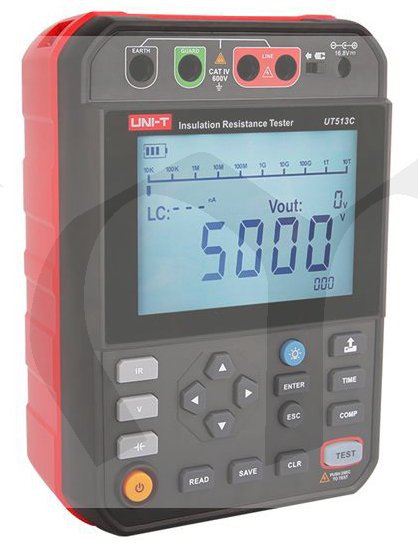 Tester izolačního odporu UT-513C 5 kV , je digitální vysokonapěťový tester izolačního odporu, navržený s několika rozsahy včetně 250 V, 500 V, 1000 V, 2500 V a 5000V.