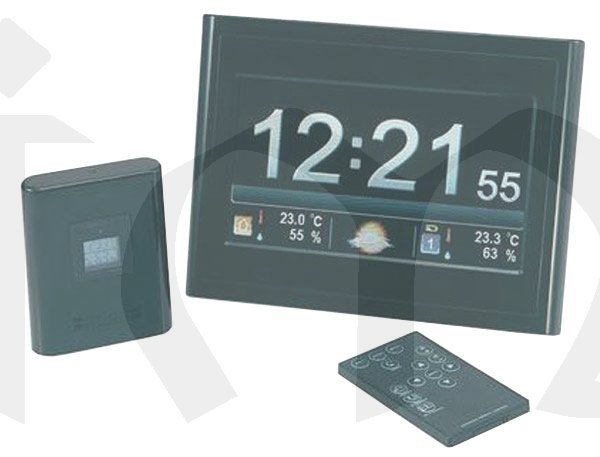 Díky této meteostanici můžete využívat funkce 3 různých přístrojů v jednom. Stolní hodiny s digitálními údaji a proměnnými číslicemi, meteostanice s barevnými symboly a digitální fotorámeček. Pohodlná obsluha díky dálkovému ovládání, které je součástí dodávky.