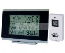 Meteostanice s rádiem řízenými hodinami a funkcí opakovaného buzení. Velký, lehce čitelný display zobrazuje současně vnitřní i venkovní teplotu. Zobrazení fáze měsíce a deního průběhu tlaku. Informace o teplotním, vlhkostním a tlakovém trendu.