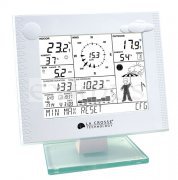 Tato nová meteostanice WS2-550 s ovládáním pomocí touchscreenu s nadčasovým vysoce lesklým designem a podsvíceným skleněným stojanem Vám na velice přehledném podsvíceném displeji zobrazí veškeré důležité informace, které se týkají počasí a času. Pokud chcete znát aktuální údaje, stačí klepnout na displej a stanice je bez odkladů ihned zobrazí. Tato rychlá stanice má možnost nastavení intervalu odečítání dat v rozsahu 2-20 sekund, tím je zaručena neustálá obousměrná komunikace. Kromě obvyklých údajů, tedy vnitřní a venkovní teplotě, číselně zobrazenému tlaku vzduchu, fází Měsíce a dalších, je na displeji i ikona panáčka, oblečeného dle počasí. Díky interní paměti umožňuje i dlouhodobé sledování počasí - lze uložit až 3000 záznamů a v případě potřeby je přenést přes USB do PC. Zde je můžete pomocí software zobrazit a analyzovat. Senzory pro tlak vzduchu, vnitřní teploty a vlhkosti vzduchu jsou vestavěny do přístroje, pro tyto hodnoty nejsou tedy zapotřebí žádné další senzory v místnosti. Ostatní data o počasí jako je rychlost a směr větru, venkovní teplota, množství srážek, vlhkost vzduchu a doba svitu slunce jsou bezdrátově přenášena pomocí senzoru.