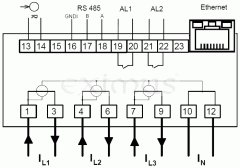 Určeno pro přímé (do 63 A) nebo nepřímé měření ve 3fázových 4vodičových / 3vodičových symetrických a nesymetrických systémech.