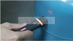 3. Když je sonda stisknuta a držena delší dobu, bude pokračovat v měření. V tomto případě lze mírně upravit úhel sondy podle toho, zda je sonda kolmá ke stěně plynové lahve, a měření lze opakovat, aby bylo dosaženo přesných výsledků měření.
