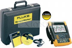 Scopemetr Fluke190-104, 4ks stíněných sond VPS410 (červená, modrá, zelená a šedá), Li-ion baterie BP291, USB kabel, software FlukeView SW90W, kufr C290, síťový adaptér a návod k obsluze na CD v českém jazyce