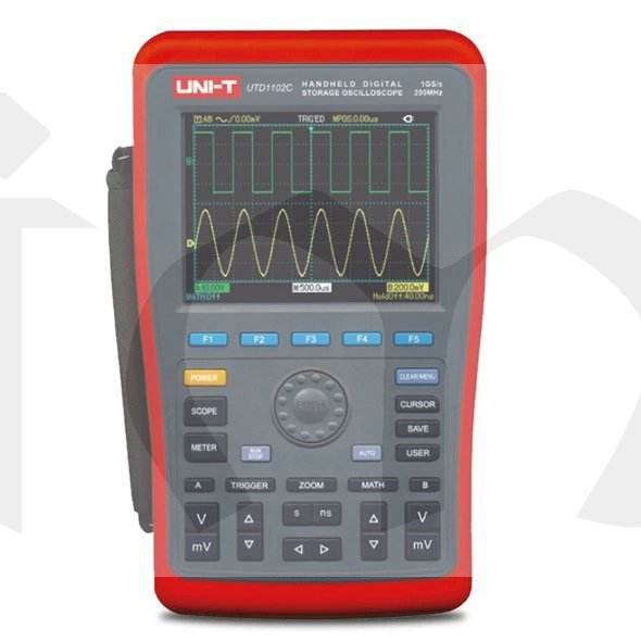 Přístroj UTD-1102C kombinuje v jednom pouzdře ruční dvoukanálový osciloskop a multimetr. Nabízí vynikající parametry a řadu pokročilých funkcí a navíc uživatelskou přívětivost, pro kterou je vhodný i pro práce v externím prostředí. Šířka pásma osciloskopu je až do 100MHz při vzorkování 500MSa/s. Jeho výkonné spouštěcí a analytické funkce usnadňují získávání a analýzu křivek, 27 parametrů signálu může měřit zcela automaticky. Multimetr umožňuje měřit DC a AC napětí a proudy, odpor a kapacitu.