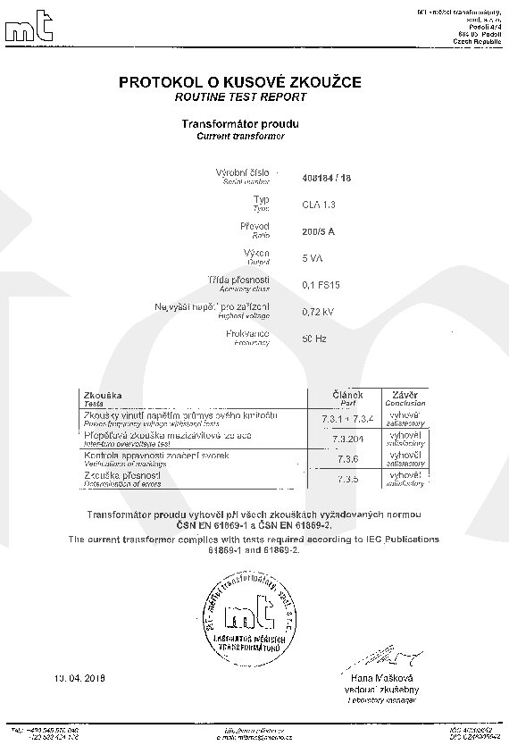 Protokol o kusové zkoušce trafa