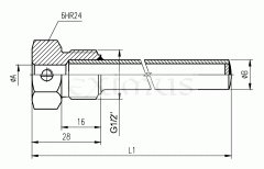 Standardně se vyrábí mosazný ořech s vnějším závitem G1/2",
