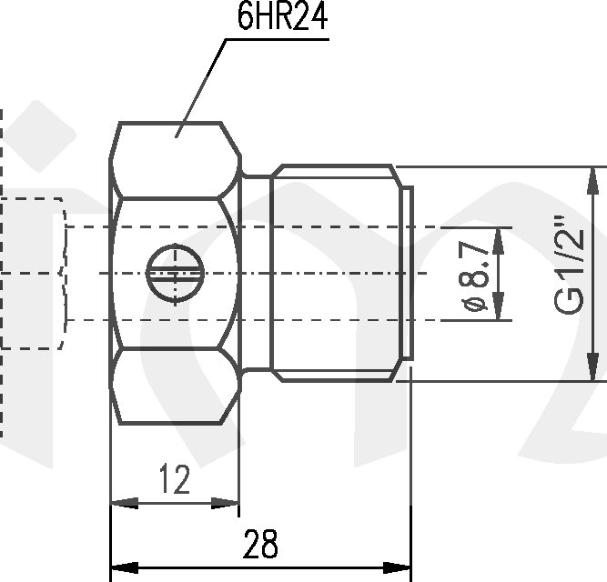 Posuvné závitové hrdlo G1/2" ; d=8.7mm, ocel lakovaná