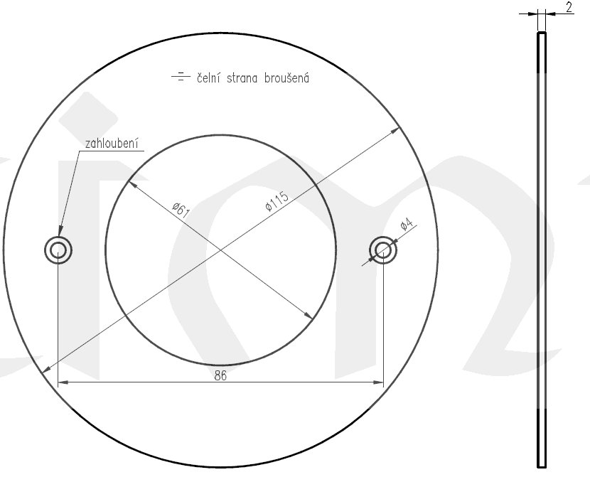 Kovová kruhová deska, plastová krabice a dvojice vrutů 3,5x35 se zápustnou hlavou (pozink).