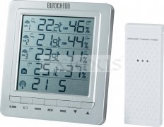 Díky tomu lze pohodlně monitorovat teplotu a vlhkost na čtyřech různých místech. Všechny naměřené hodnoty jsou zobrazeny na jednom přehledném LCD displeji. Zobrazení úrovně komfortu dle naměřené vlhkosti. Záznam pro min/max hodnoty jednotlivých prostorů. Stanice navíc vybavena hodinami s budíkem a datem.