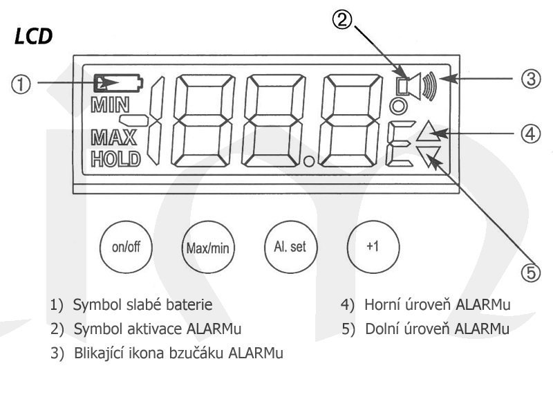 - nastavitelné alarmové hodnoty (pro spodní i horní limit)