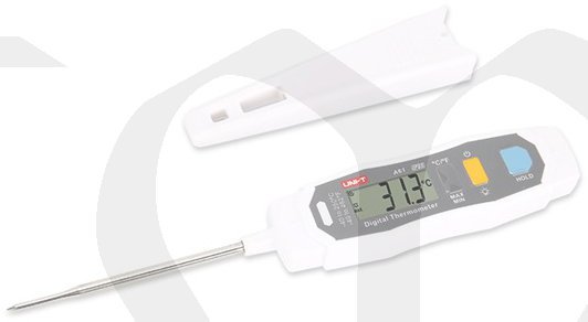 A61 je teploměr s krytím IP65 s nerezovou sondou a certifikací FDA. Je vybaven ochrannou skořepinou, která zabraňuje náhodnému propíchnutí a spálení kůže. Díky designu podobnému peru, jasnému podsvícení displeje a funkcím automatického vypnutí je A61 užitečným nástrojem pro měření teploty pro vaření, chlazení, topení, zpracování potravin a další aplikace.