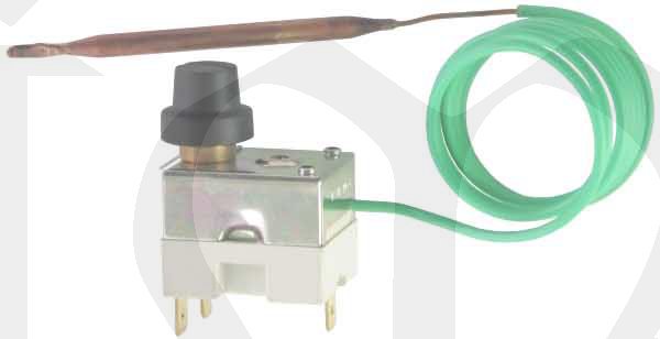 Kapilární termostat havarijní, délka kapiláry 1m, +140°C, přepínací kontakt, zlacené kontakty