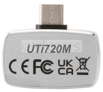 Termokamera UTi-720M je kamera pracující v oblasti infračerveného záření, určená pro měření povrchové teploty objektů v rozmezí od -20°C do 200°C. Kamera je určena pro připojení k běžnému chytrému telefonu, nejlépe vybavenému zásuvkou pro konektor typu USB-C. Je však možné kameru propojit s telefonem i přiloženými prodlužovacími kabely typu USB-C/USB-C nebo Mikro USB/USB-C. Na displeji mobilního telefonu můžete zobrazit tepelný obraz objektů, převedený do viditelného obrazu se zvolenou barevnou paletou: železná červená, duha, stupnice šedé, horká červená, černo bílá, láva, vysoce kontrastní duha. V reálném čase je možné nechat v obraze vyznačit místa s minimální i maximální teplotou s údajem ve stupních Celsia nebo Fahrenheita. Možnost nastavení alarmů při překročení určité teploty. Obraz z této kamery je možné prolínat (PIP) s obrazem přední nebo zadní kamery mobilního telefonu, přičemž současně lze infračervený obraz zrcadlit. Je možné analyzovat teplotu v bodě nebo vyznačené oblasti (obdélníku, kruhu, čáře apod.) měřeného objektu. Automatické nebo ruční spouštění uzávěrky fotoaparátu, uložení fotek nebo videí. Možnost úpravy fotek v aplikaci.