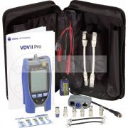 VDV II Pro se snadno ovládá a umožňuje rychlou kontrolu měděných kabelů od hlasových, datových a video instalací, jako jsou telefonní linky, datové kabely bezpečnostní a video sítě, a to jak v domácnosti, tak v kanceláři a průmyslové prostředí. Prémiový model mezi testery kabelů ukazuje chyby ve vedení jako je přerušení, zkrat, špatné zapojení a prohozené páry, zatímco reflektometr TDR podporuje vyhledávání poškození. Rozpozná analogové (PBX) a digitální (ISDN) telefonní služby a ukazuje rychlost přensu dat v síti a duplex statusu. K dispozici je připojení pro konektory RJ11, RJ45, koax F a BNC. Zkoušečka je vybavena velkým podsvíceným LCD displejem a integrovaným remote adaptérem na spodní straně přístroje.