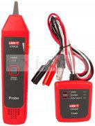 UT 682D - tester kabelů nabízí jednoduchý způsob, jak rychle najít a identifikovat kabely, dráty a svazky kabelů. Připojte přístroj ke kabelu a poté sledujte kabel a signál s pomocí sondy. Přístroj také může být použito k testování spojitosti vedení a polarity na telefonních linkách.